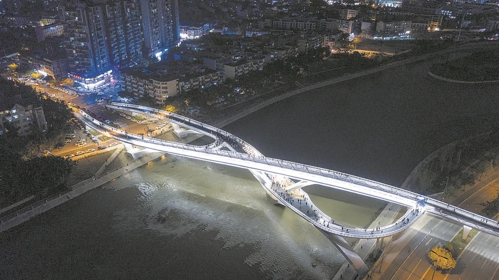 位于成都市高新区南部园区府河沿线,沿公济桥路东西方向走向,与府河正交,在新会展中心以东,横跨锦江,西连红星路南延线,接入江滩公园,向东跨越熊家桥路,连中和老城区。这座桥的设计方也正是西南交通大学土木工程设计有限公司团队。