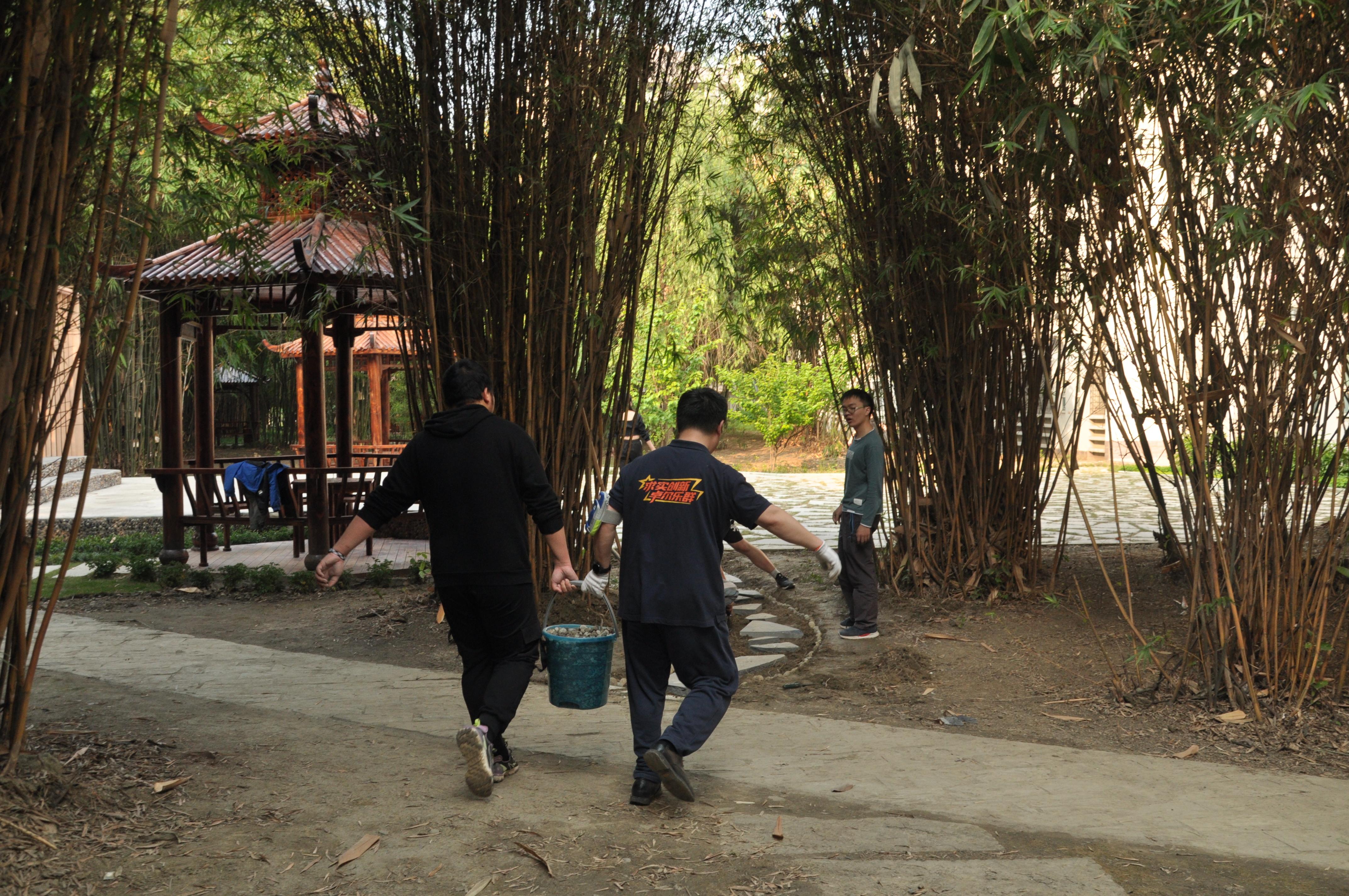 门前集合,向大家讲述活动的主旨——石径筑造不仅是为了方便大家在书院的学习和生活,为书院增添几处文艺景观,也可以锻炼同学们的实践动手能力。“千里之行,始于足下”,我们要像铺路一样踏踏实实地铺好人生的路基,努力而耐心地创造属于自己的独具一格的精彩人生之路。