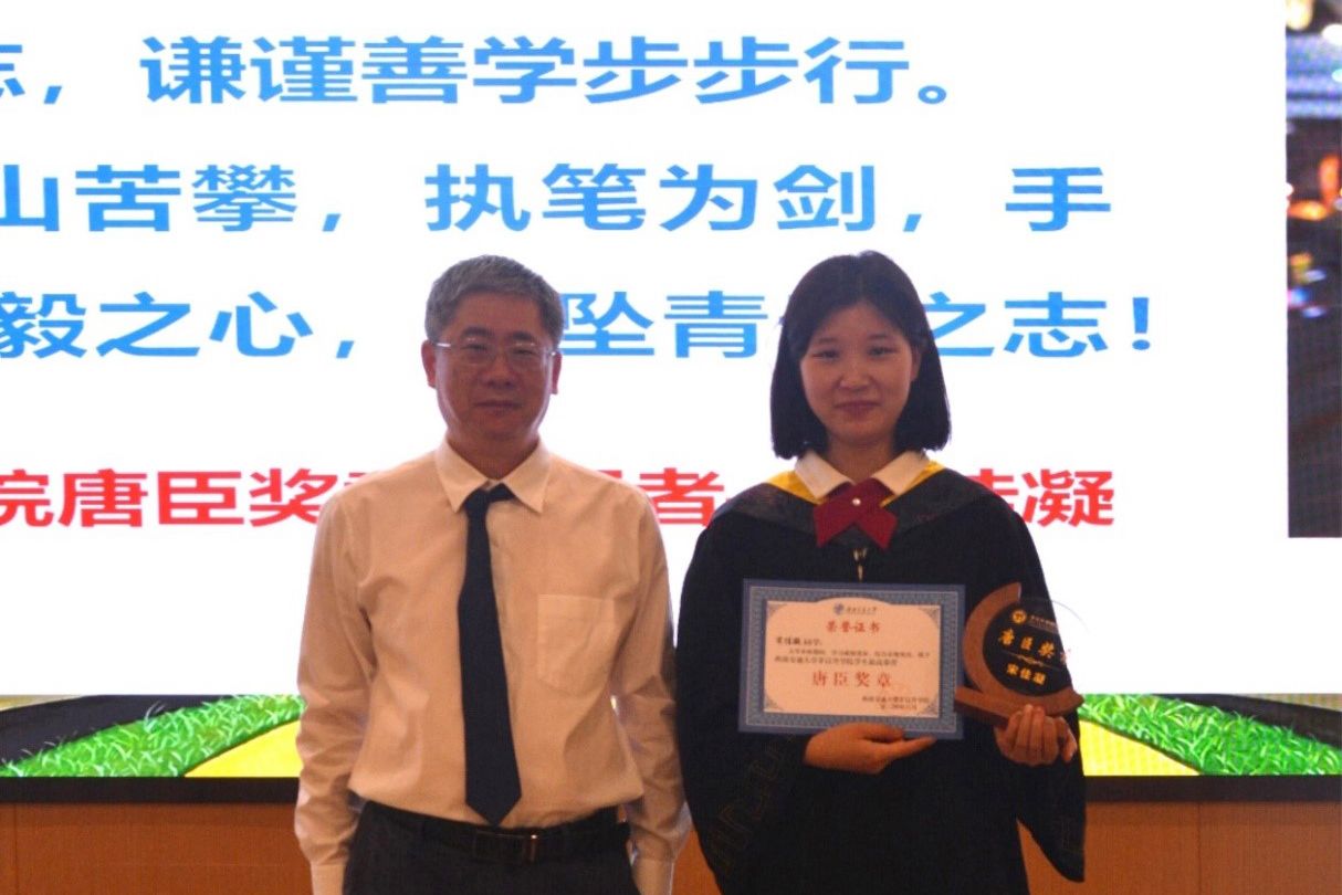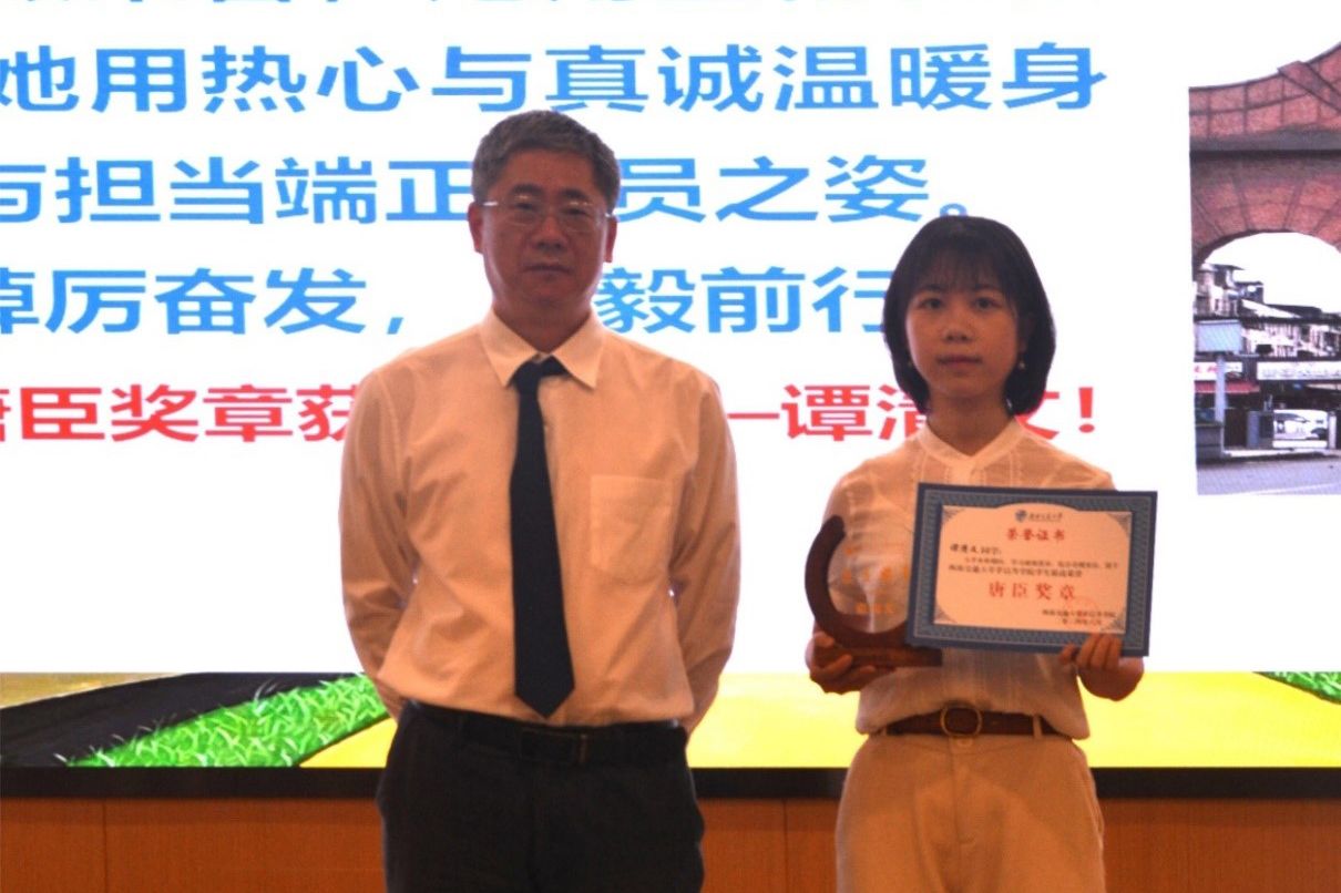 接下来,进入毕业荣誉典礼的表彰环节。校长助理、教务处处长、 腐漫画 常务副院长崔凯宣读学院2024届学生最高荣誉“唐臣奖章”表彰文件,并由康国政院长对7位获得唐臣奖章的毕业生颁发奖杯及证书。