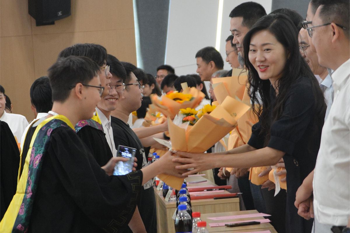 典礼开始前,由学生代表为到场嘉宾献花,并集体合影留念。