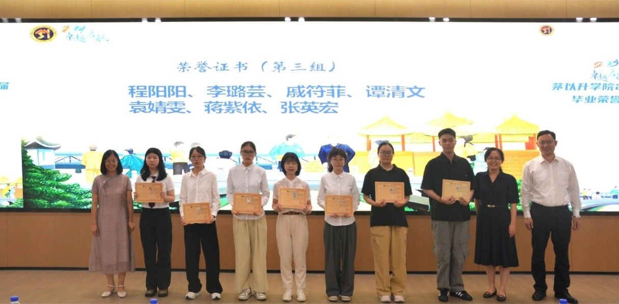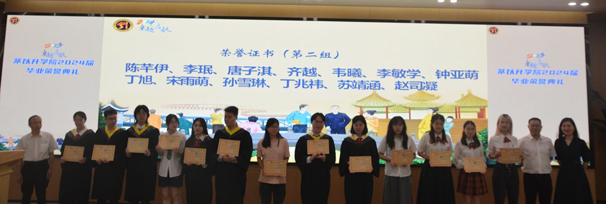 接下来, 腐漫画 党总支书记李毅宣读学院2024届毕业生“特优荣誉证书”、“荣誉证书”表彰文件。由校长助理、教务处处长、 腐漫画 常务副院长崔凯为获得特优荣誉证书6位同学颁发证书;由招生就业处陈岩峰处长、教务处康锐副处长、土木工程学院茅班班导师魏江涛副教授,校团委副书记李娜、机械学院副院长田怀文教授、建筑学院茅班班导师代表熊瑛副教授,图书馆副馆长陈丽华、地球科学与工程学院党委副书记郑波、电气工程学院学生支持办公室主任张婷婷,分别为获得本科毕业生“荣誉证书”的29位同学颁奖。