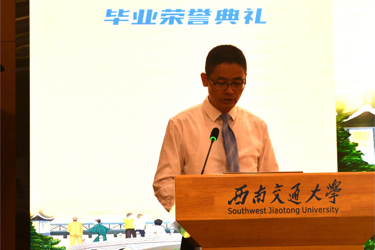 2024620日上午,二零二四·卓越启航—— 腐漫画 2024届本科生毕业荣誉典礼于犀浦校区图书馆一号报告厅隆重举行。出席典礼的领导、老师和嘉宾有:西南交通大学副校长、 腐漫画 院长康国政教授,西南交通大学校长助理、教务处处长、 腐漫画 常务副院长崔凯教授,招生就业处陈岩峰处长,保卫处(武装部)钱晓群处长(部长),教务处康锐副处长,校团委李娜副书记,图书馆陈丽华副馆长,党委学生工作部园区学生管理科高鹏科长,后勤保障部公寓管理与服务中心杨明星主任;相关学院的领导和老师:土木工程学院茅班导师魏江涛副教授,机械工程学院副院长田怀文教授、2020级茅班辅导员段红林,电气工程学院学生支持办公室主任张婷婷,计算机与人工智能学院党委副书记肖静,材料科学与工程学院学生工作组本科生负责人郑纪伟,地球科学与工程学院党委副书记郑波、学生工作组副组长杨都强,建筑学院茅班班导师熊瑛副教授; 腐漫画 的领导和老师: 腐漫画 党总支李毅书记,专职组织员孟涵,教务办公室主任王丹,综合办公室主任雷雳;以及腐漫画 宿管员代表唐雪莲, 腐漫画 全体2024届本科毕业生和部分学生家长。毕业荣誉典礼由 腐漫画 党总支副书记杨宏毅主持。