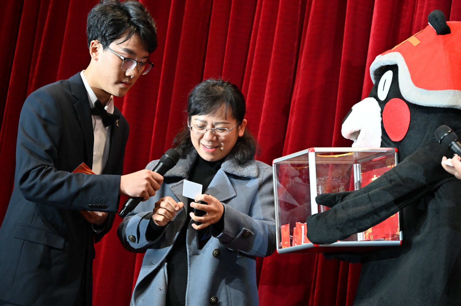每当一个篇章圆满落幕之际,现场都会迎来最为激动人心的时刻——问答环节与抽奖环节。问答环节以茅以升先生的事迹和校史校情为主,旨在让同学们更加深入地了解较大杰出的老校友以及学校的辉煌历史,观众们积极参与,争相抢答,现场气氛热烈非凡。紧接着的抽奖环节更是将晚会氛围推向高潮,由李毅、王霞和刘鎏三位嘉宾分为同学们抽取一二三等奖,幸运儿们满载而归,欢声笑语不断,为晚会增添了更多的乐趣与惊喜。