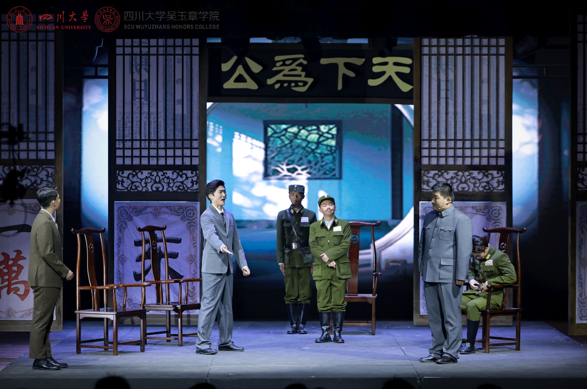 吴玉章187812--196612四川自贡荣县人,中国杰出的无产阶级革命家、教育家历史学家和语言文字学家、新中国高等教育开拓者,曾被誉为“延安五老”之一1922年至1924年担任国立成都高等师范学校(四川大学前身)校长。舞台剧以四川大学吴玉章学院大一新生“海川”穿越回1922年的视角展开,通过八幕剧情串联起吴玉章先生在成都高师担任校长期间教育救国坚定信念,锐意推行三大改革:以治校重塑学风,引进现代学科体系,开创中西并重的办学新局。