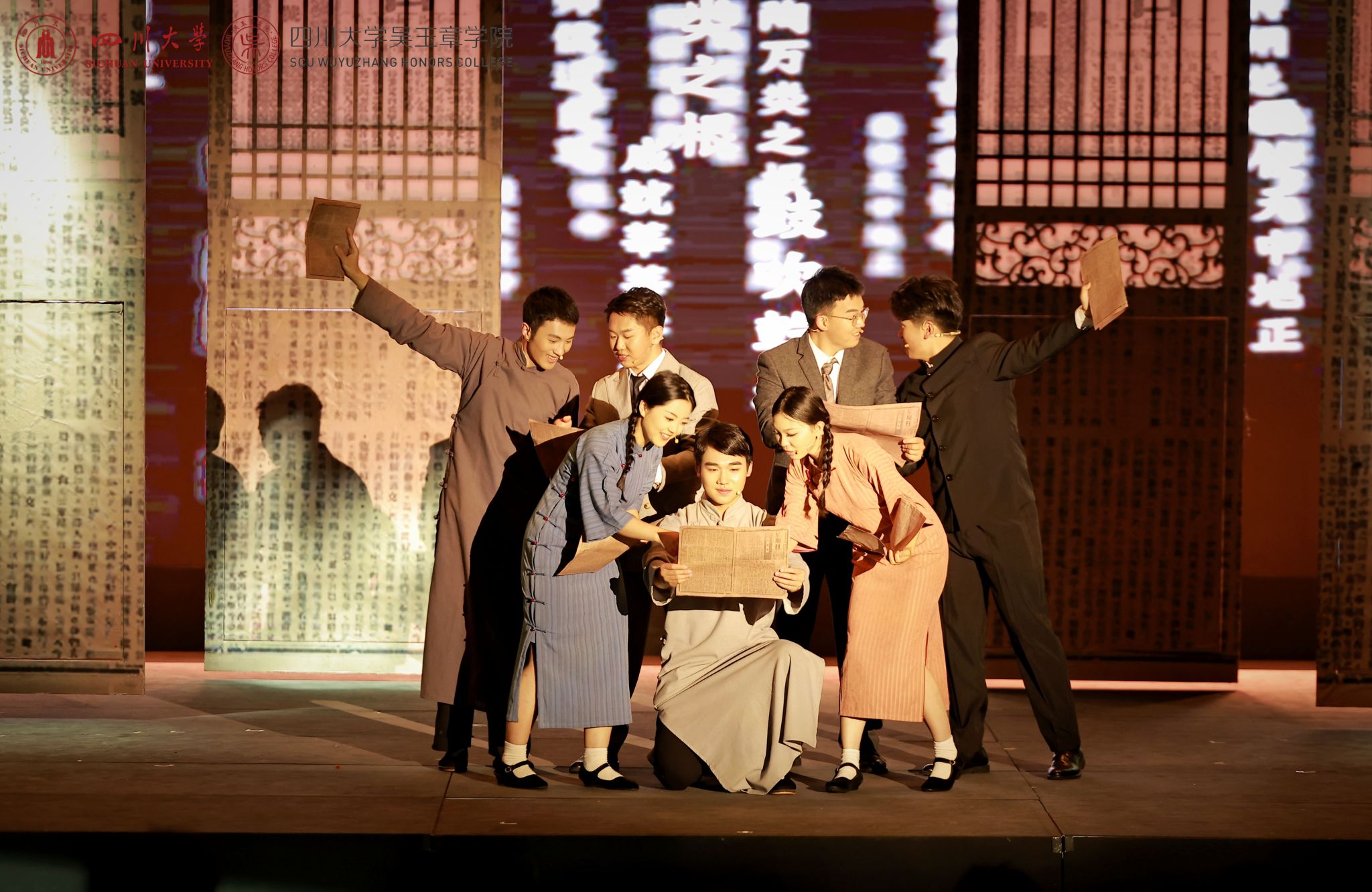 全剧巧妙融入成都帮腔、民国风物等多元特色,既以细腻表演塑造人物群像,又以激昂戏剧冲突再现教育革新的澎湃浪潮,生动诠释了“一息尚存,绝不松劲”的师者风骨将美育教育与思政教育深度融合,为师生呈现一堂跨越时空的“思政大课”。