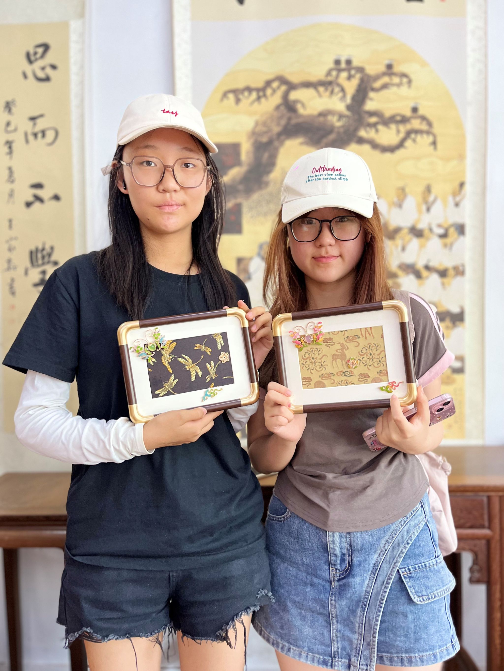 当一件件宋锦珐琅螺钿画作品诞生,同学们手持装裱好的成果合影,笑意里满是成就感。此次活动不仅是一次技艺实践,更是唐臣美育基地以民族传统艺术厚植文化热爱理念的生动落地——通过宋锦的典雅、珐琅的绚丽、螺钿的天然,让同学们更直观地触摸到中华传统工艺的多元魅力,在创作中完成对文化根脉的认知与亲近。