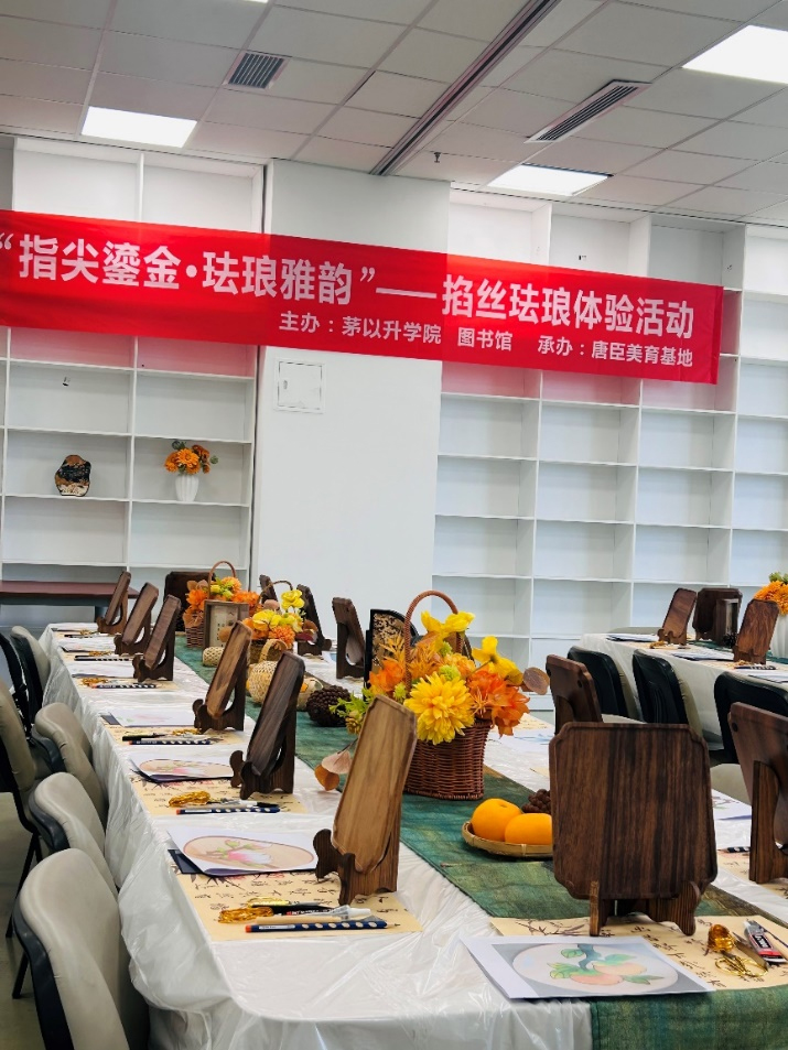 、图书馆联合主办,唐臣美育基地承办的“指尖鎏金·珐琅雅韵”掐丝珐琅体验活动顺利举行。活动以“触摸非遗温度、沉浸式感受传统工艺魅力”为核心,聚焦文化视野拓宽与文化自信培育,通知一经发布便引发全校学子热烈反响——线上报名突破300人,最终遴选65名学生参与现场体验,火爆氛围充分彰显了非遗文化在青年学子中的强大感染力。