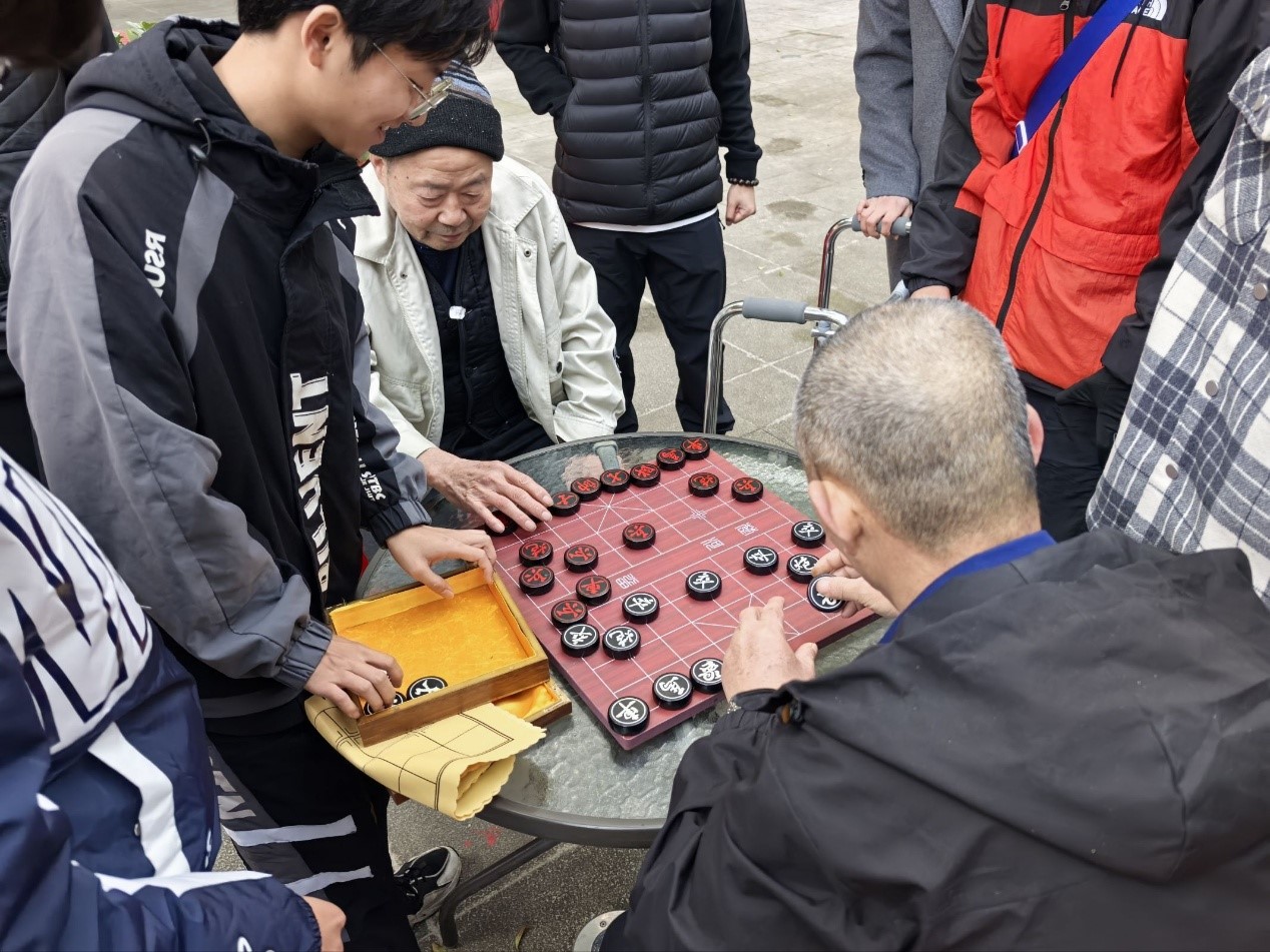 最令人动容的是第三环节的“温情陪伴时间”。志愿者们分组行动,确保每位老人都能得到专属照料。大家或围坐在一起,耐心倾听老人们讲述过往的经历与生活趣事;或与老人对弈棋局,在楚河汉界间切磋技艺、畅谈人生;或搀扶着行动不便的老人漫步庭院,欣赏秋日美景,分享提前准备的风景照片,共同回忆美好时光;还有的志愿者为老人轻揉肩背,缓解身体疲劳。陪伴过程中,志愿者们始终保持着耐心与细心,用真诚的交流与贴心的服务,驱散了老人们的孤独感,志愿者们也在陪伴中深受触动,纷纷表示,与老人们的相处让他们学会了倾听与包容,更深刻理解了“陪伴是最长情的告白”的含义,这份经历将成为他们成长路上宝贵的财富。
