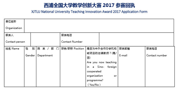 2. 您也可以按照下方“参赛回执”填写并发送至邮箱: innovation@xjtlu.edu.cn 完成报名。