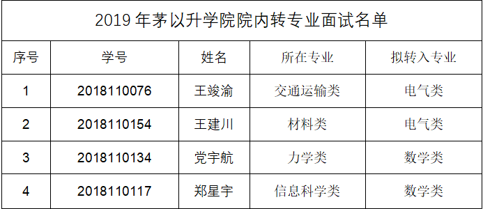 按照学校转专业工作安排,茅以升学院将于近期开展2019年申请院内转专业考核,具体工作安排如下,请相关同学准时参加: