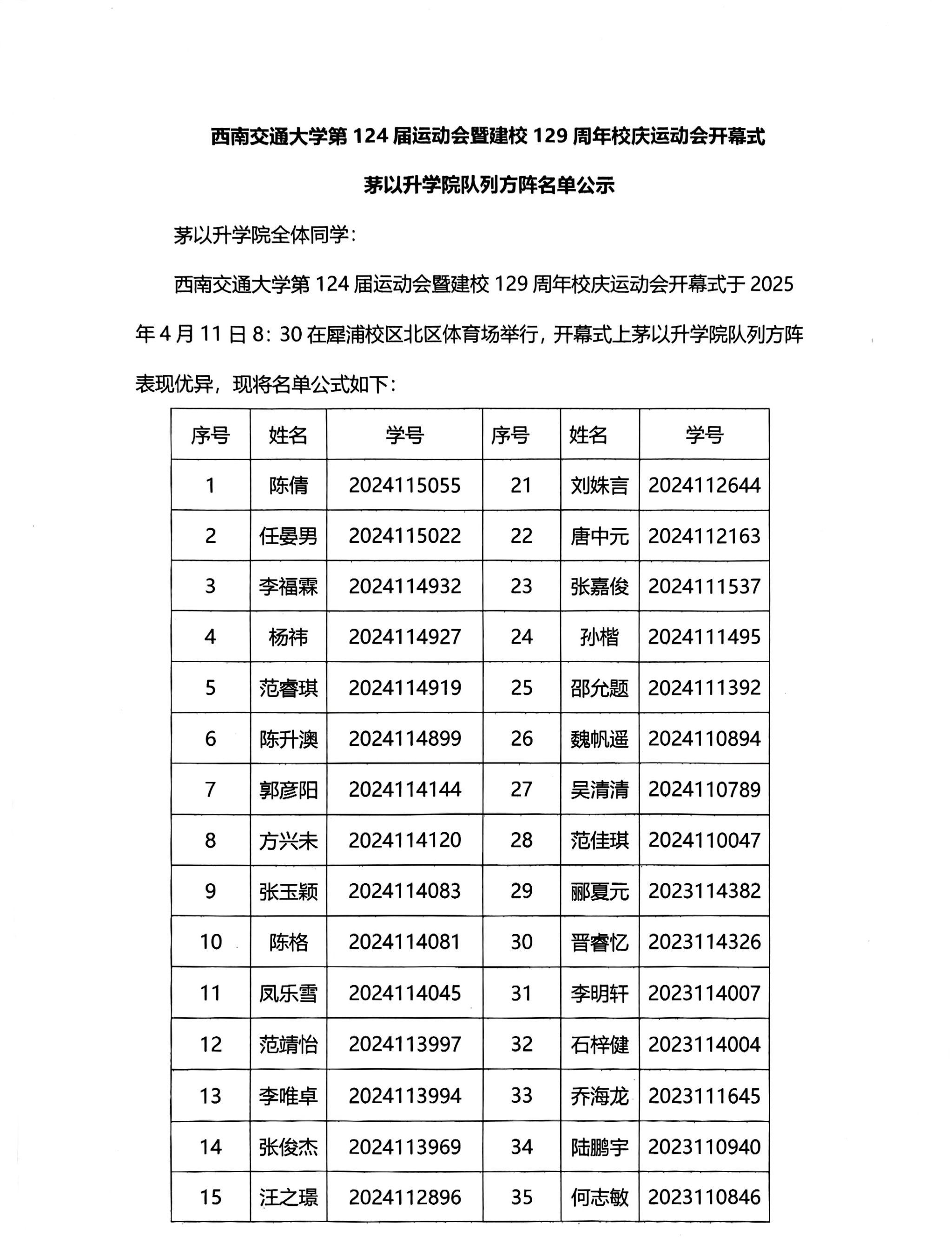 【公示】西南交通大学第124届运动会暨建校129周年校庆运动会开幕式 腐漫画 队列方阵名单公示