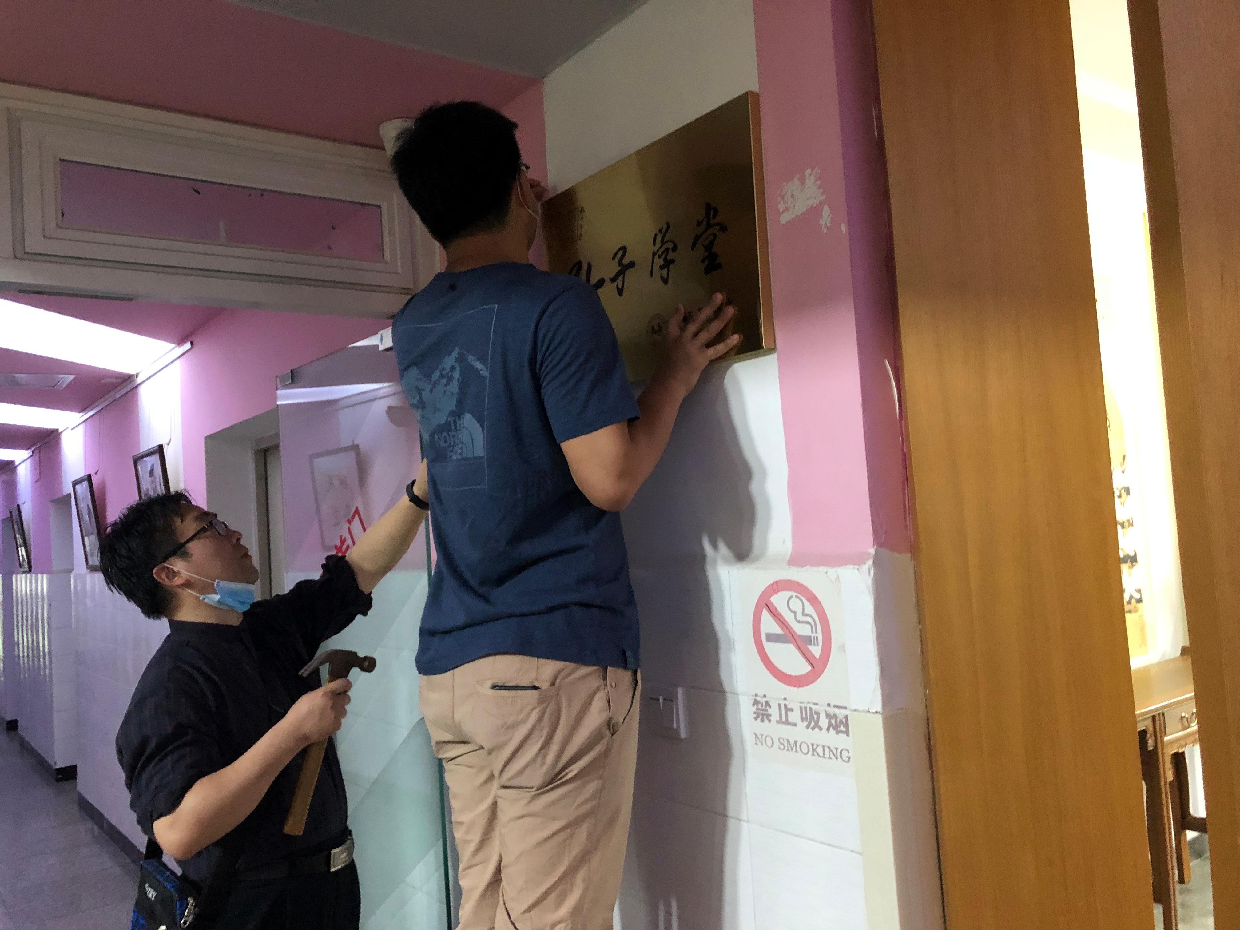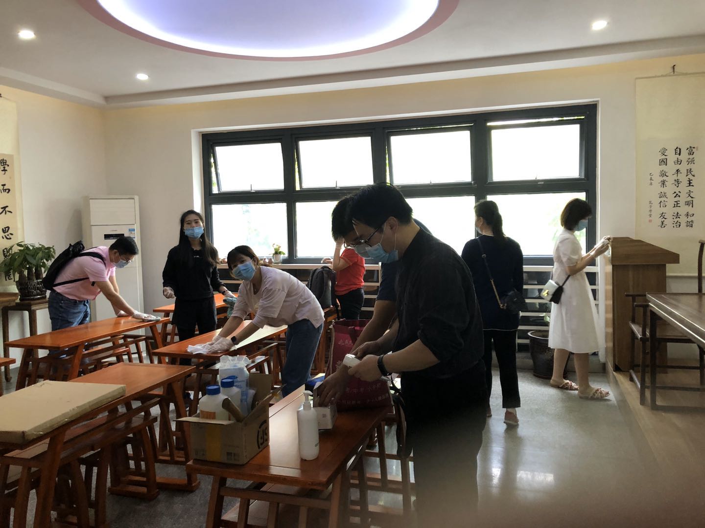 下午2:30,学院全体教工党员带着清洁工具走进书院,分别对腐漫画 各楼层公共区域进行统一清洁打扫,对书院内设施进行仔细检查,包括已重新更换布置桌椅的“孔子学堂”“唐臣学堂”,以及四楼、五楼读书阅览厅,六楼“党建走廊”,各层茶水间等;同时对各楼层主题走廊挂画进行了布置和更换,为迎接第一批茅院学子返校做好准备。