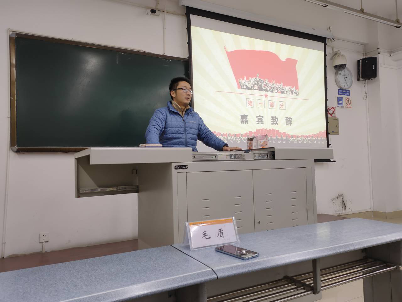 团委书记毛盾老师作开场致辞。毛盾老师从三个关于基础团务的小问题入手,强调团支部各委员应该熟练掌握基础团务工作要领,才能将各项工作准确传达给支部成员。同时也是建设“班团一体化”不可缺少的基础。