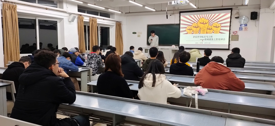 接着,由付环瑀同学主讲基础团务工作。他强调,从三会两制一课到推优入党,团支部书记应该和其他支委协作配合,共同建设基层团支部,落实好基础工作,并着重讲解了“智慧团建”操作系统的使用方法和近期正在进行的团支部自评整顿工作方法,对操作过程中需要注意的事项进行特别说明。最后,付环瑀同学回答了培训人员在实际操作中遇到的问题。基础团务工作培训会到此结束。