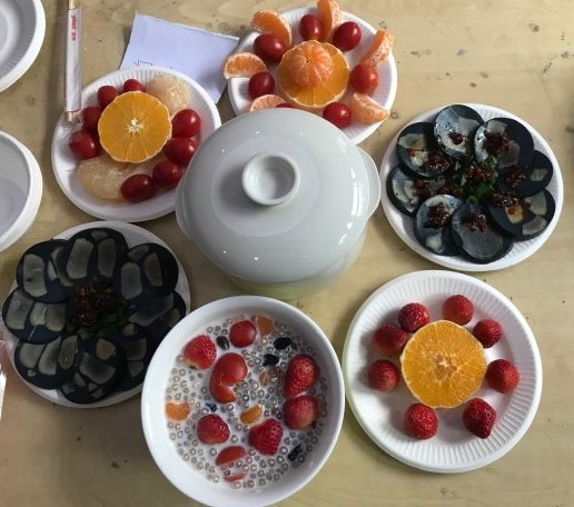 在三轮的比赛中,每个参赛组按照凉菜、粥、沙拉的顺序依次将菜品端上场,同时对自己的菜品进行解说。尽管同学们在学校很少有机会能够自己动手烹饪,经验稍显不足,但多样的菜品、丰富的烹饪手法以及同学们独特的创意菜名和菜品精致的卖相依旧赢得了评委的赞扬。评委依次品尝了同学们的手艺后,对三种菜系分别进行打分。之后,肖平教授上台讲话,她表达了对本次活动的支持和赞赏,同时对同学们的表现表示欣慰,同学们在繁忙的学业之余,仍然能够做出精致、美味的菜品,这种精致生活的态度是非常值得肯定的。