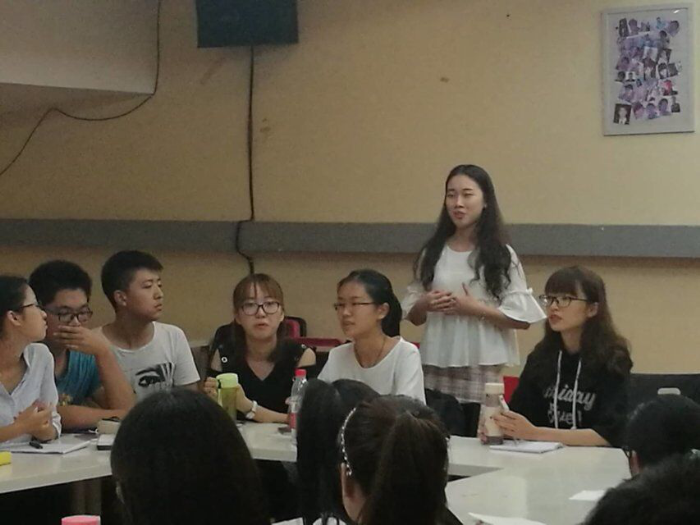其次,是8位新同学的自我介绍环节。每位同学都大方热情的与大家打招呼,从家乡,特长,班级期望等方面一一进行了发言,整个环节气氛都十分愉悦和谐,同学们都聚精会神的倾听,也不乏与同学在兴趣爱好方面引起共鸣的阵阵掌声与欢笑声,相信这将既有助于新同学和大家打成一片,融入茅运这个新的大家庭。