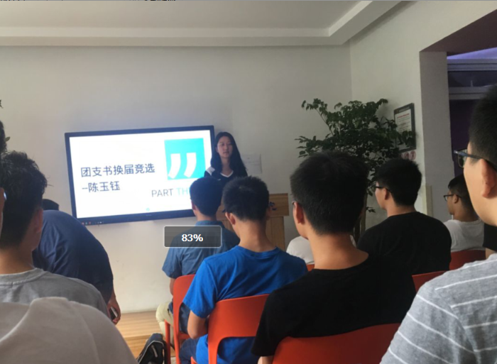 原团支书石林同学,因为个人原因不再出任茅信团支书一职。在对他上一学年的工作表示肯定和感谢后,经班委对报名表的审查以及班内投票后决定,由陈玉钰同学担任团支书一职,并上台发言。