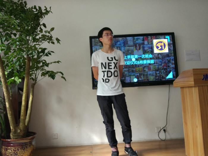 迎新结束后,团支书、学习委员、生活委员依次对上一学年的工作进行总结。随后班长李增辉同学做总结发言。首先,李增辉同学对其余各位班委在上一学年中的辛勤付出表达了感谢。接下来他就班级在上一学年中取得的各项优异成绩表示骄傲,并希望各位同学在接下来的学年中可以再创佳绩。