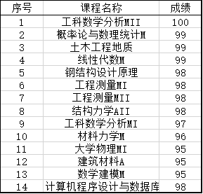 1) 专业基础知识扎实。即专业排名靠前,对一些专业基础问题熟悉(如力学、结构设计原理、桥梁工程相关知识)。所以希望各位学弟学妹们从现在开始好好学习专业课程,这样既能提高自己的专业排名,同时也为免研复试的准备减轻些压力。