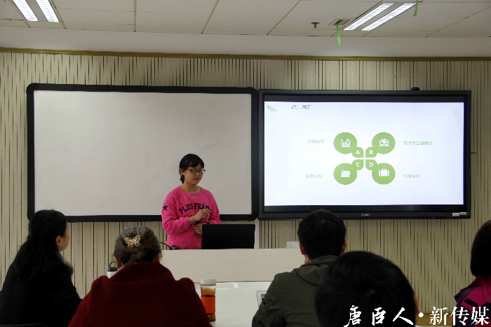 会议进入到第二部分,评审环节。首先 腐漫画 科研训练营小组上台答辩。他们的主题是“wei可持续校园行”。答辩人李君从初步调研、概念设计、财务预估、团队任务分配等方面介绍了他们对于腐漫画 后小树林的整改方案。评委老师对其准备工作、工程进度设计、功能设计思路等提出问题并提供了建议。