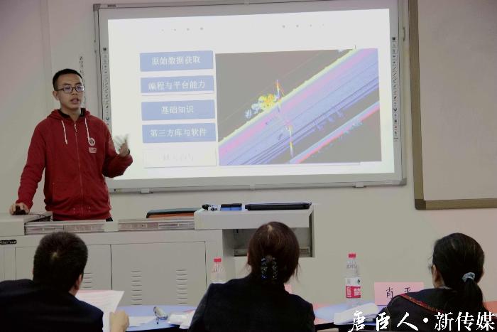 接下来第五小组对他们的科研项目“基于机器学习的车载Lidar点云轨道提取”进行了相关介绍。其构想为根据三维激光扫描(Lidar)提供的铁路轨道点云数据,从其中分离出钢轨信息的数据点并建立钢轨的三维模型,这样就能大大提高轨道检测的效率。老师们建议要突出创新点,尤其希望在数据处理方面能够取得创新和突破。