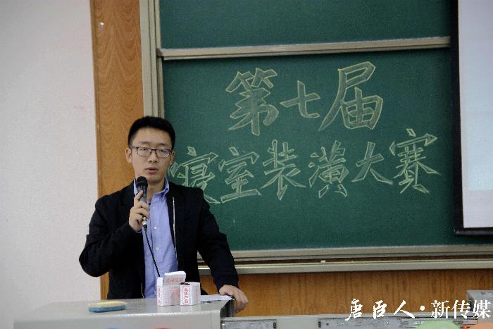 接着,书院管理委员会主席陆禹佳发言,他赞扬了此次大赛开展以来参赛同学们表现出的热情和新颖的创意,并感谢了工作人员们的辛勤付出。他随后又补充说明本次比赛的一些要求。在主持人对基本规则进行讲解后,本次决赛正式开始。
