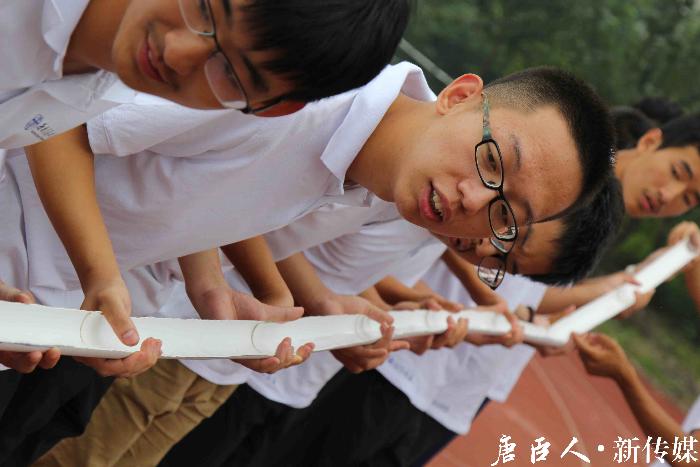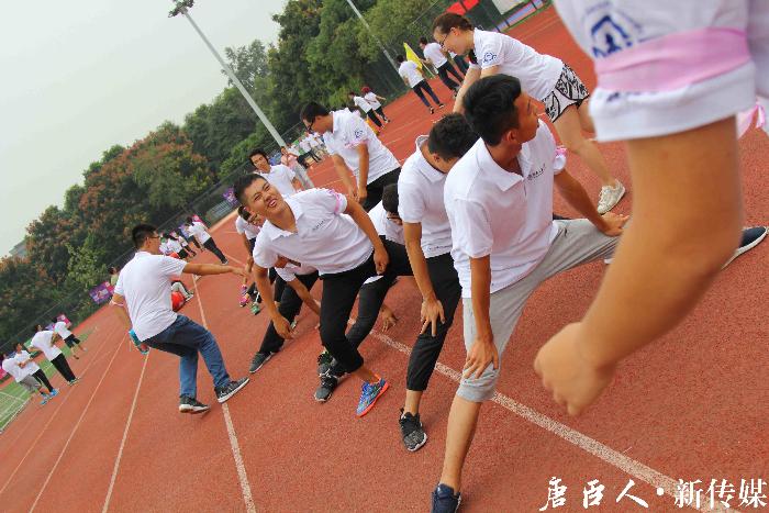挑战“一字马接龙”中,同学们惊叹于一些“汉子”的柔韧性,同时也被“屌丝”们忍着疼痛下压的精神力折服。经过各队伍的精密计算,各派出10个合适人选对本队伍提出的距离进行挑战。