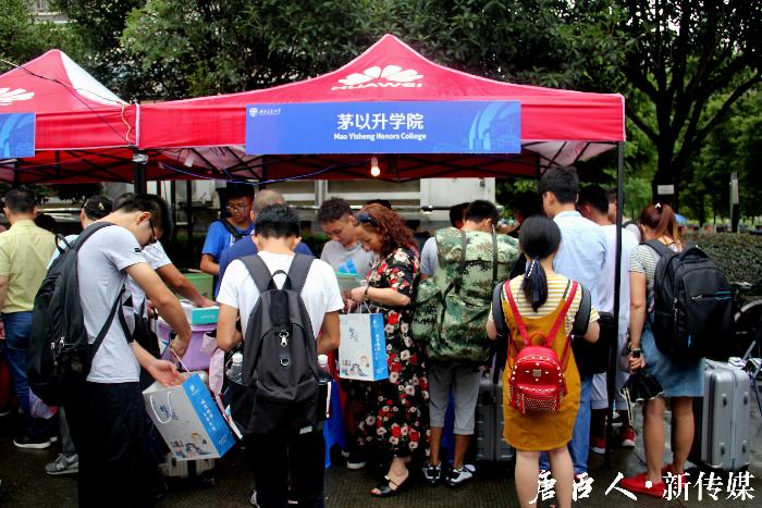 今年,茅以升学院组建的迎新志愿服务小队,由2015和2016级部分同学组成,他们穿着着鲜艳的院服,佩戴着迎新工作证,为络绎不绝的新生及家长提供服务,满怀热情地迎接每一张新鲜的面孔,构成了一道校园独特的风景线。
