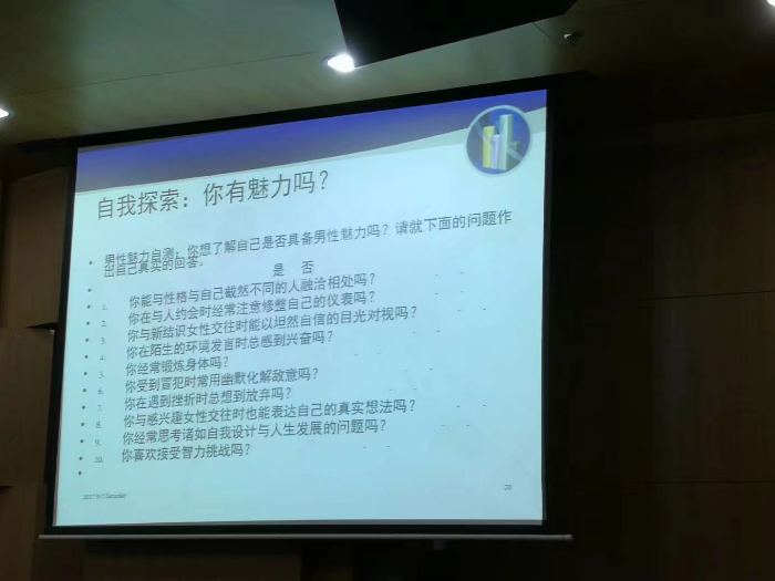 随后宁教授邀请同学们进行了一个关于个人魅力的心理测试,使同学们认识到了自己的不足。