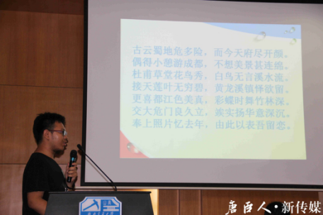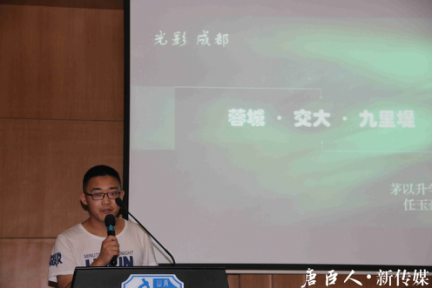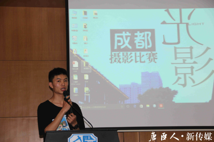 场上观众对李佳蔓老师的致辞报以热烈掌声。随后,比赛进入第一个环节——“我与摄影”。每位参赛者依次登台,阐明自己对比赛主题的理解,讲述作品故事。第一位选手,来自地球科学与环境工程学院的王博轩展现了一组题为“最爱蜀地行不足”的组图,并用自创的七言古体诗述说了图片故事。第二位选手何非同样来自地球科学与工程学院,他以一个浙江人的角度,观察蓉城的独特。阡陌巷弄里的生活气息、历史悠久的三人麻将都给他留下了难忘的记忆。来自建筑与设计学院的唐程璇从专业角度阐述了她所提交作品的构图方法。方法技巧之外,驻足都江堰鱼嘴的她也真切体会到了“逝者如斯夫,不舍昼夜”的精神内涵。第四位选手是来自 腐漫画