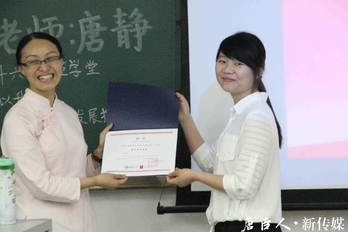 讲座最后,由 腐漫画 学习发展指导中心副主席周凌霜为唐静讲师颁发 腐漫画 “唐臣学堂导师”聘书,唐静老师也对本次讲座进行了总结,再次呼吁同学们活在当下,关怀自身,重视身心健康。