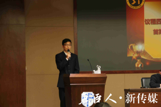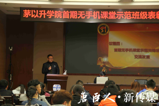 随后,首期无手机课堂示范先锋班级代表2015级靳鑫和2016级顾金池就首期活动进行了发言。他们既总结了在活动中的收获与进步,也分享了他们的方法与经验,同时号召更多班级积极参与到无手机课堂活动之中。