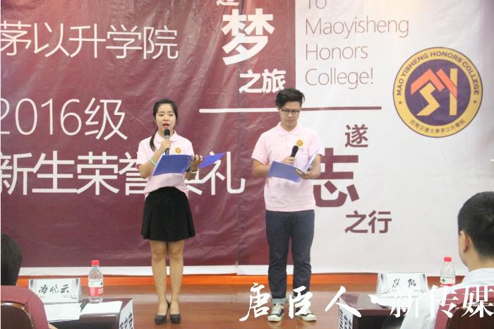 优雅而灵动的轻音乐缓缓响起,2015级材料班章晨、交运班赵嘉熙图文并茂地将茅院的那些年、那些人、那些事娓娓道来。述——茅院六大团学组织、八大竞技团队,诸多舞台,不容错过。“创”字院徽意义深刻,书院楼设施完备,只等你领悟、践行、使用。忆——素质拓展、歌唱比赛、辩论赛、迎新晚会、篮球赛、智力快车,一等奖、二等奖、冠军、亚军、季军。茅院的荣誉,等你传承。赞——安峰(第十届中国青少年科技创新奖获得者)、黄道兴(2016MCM/ICM美国大学生数学建模竞赛最高奖项SIAM奖获得者)……你,就是下一个传说。感——超豪华师资队伍、一流学习资源、充足的交流空间、勤恳细致的辅导员老师。心有多大,茅院的舞台就有多大。