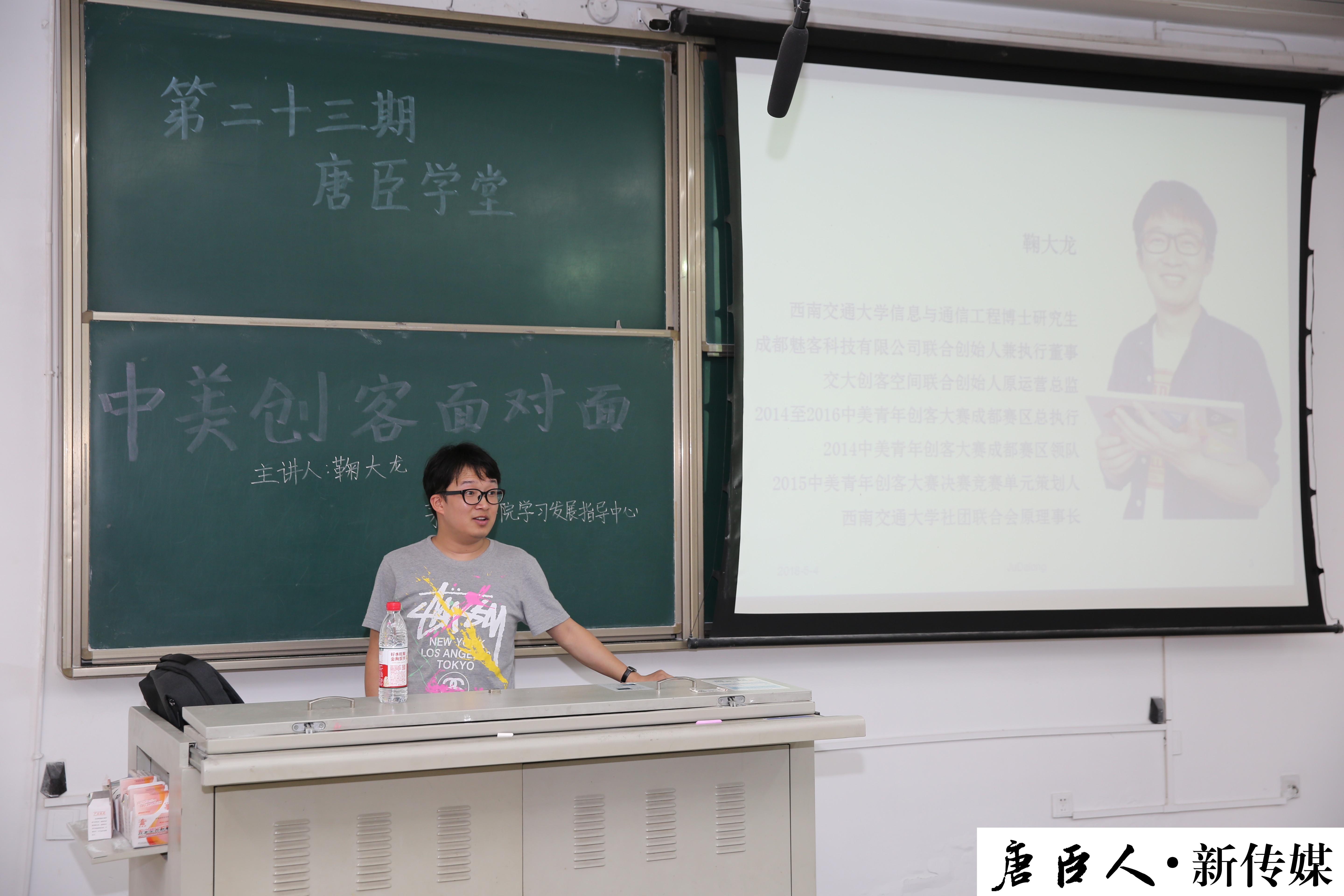 2018年5月4号19:00,第二十三期唐臣学堂“中美创客面对面”宣讲会在X2217举行。主讲人鞠大龙为同学们介绍了中美青年创客大赛的比赛形式、比赛主题、参赛须知等相关内容,也讲述了他与创客大赛的不解之缘。腐漫画