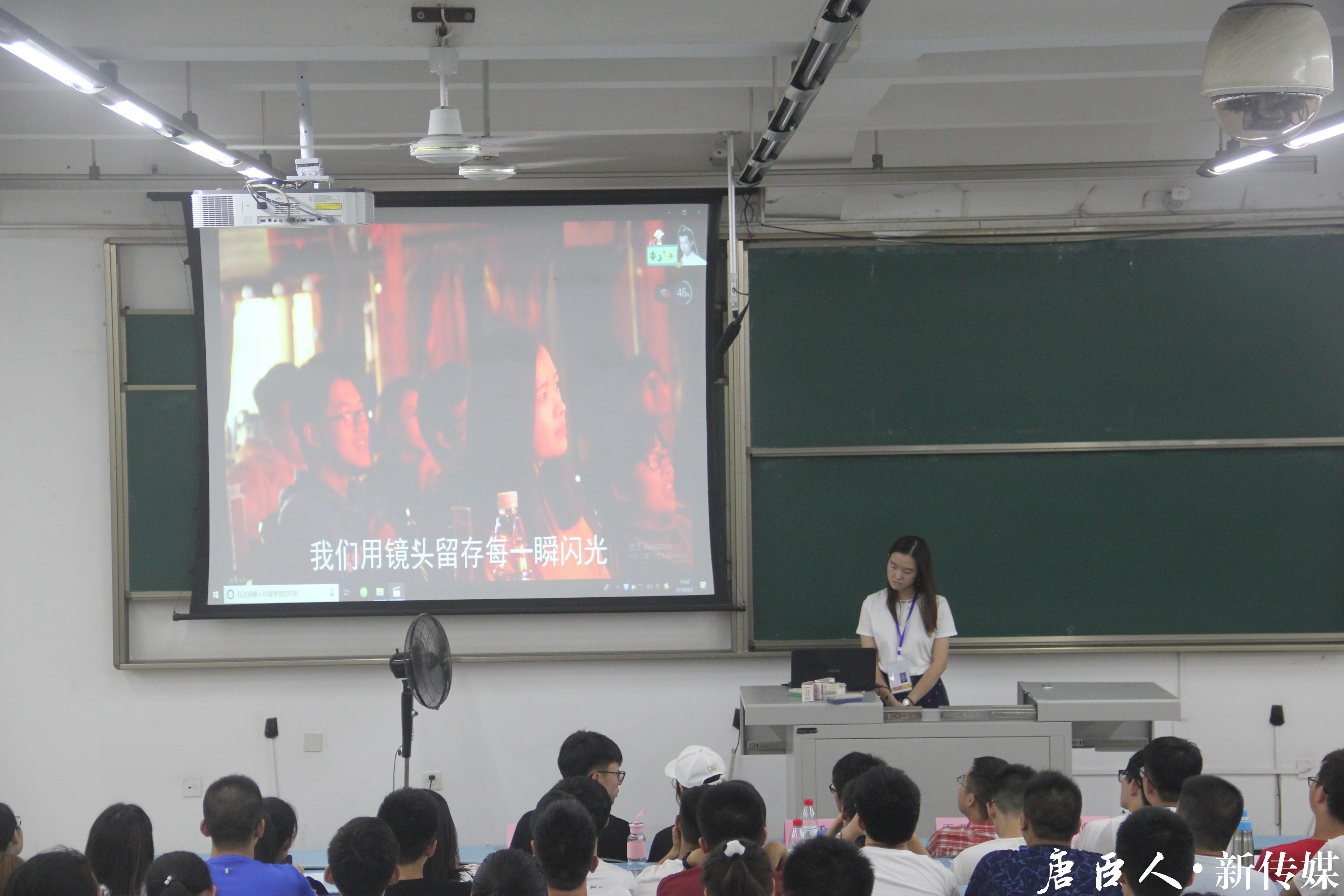 官方媒体,唐臣人·新传媒成立于2011年。经过六年多的筛选与改组,它已经拥有了完备、合理的协会制度和有序、灵活的人员分配。其组织下辖文字编辑部、摄影部和新媒体部三大部门,拥有学院最为专业的文字、摄影、新媒体工作者,并具有负责学院各活动的采访、报道及视频与海报制作,为学院撰写通知、公告和录制官方视频,提供个人写作平台和负责院网、官微、官博的内容更新等职能。随后,文字编辑部、摄影部、新媒体部依次作了部门介绍,强调了彼此之间的分工与合作,并凭借风趣的讲解赢得了阵阵掌声。