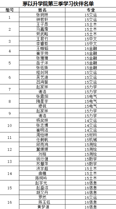 现将本季组队情况公告如下,希望以下同学能够在学习生活中互帮互助,共同成长。