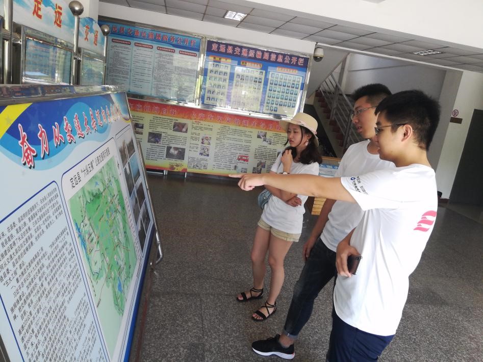 2018年7月,实践团在与负责扶贫工作的帮扶干部沟通后,多次前往定远县交通局进行材料对接和沟通交流。定远县交通运输局有关领导同志及帮扶干部向实践团介绍了扶贫攻坚工作开展情况和定远县脱贫攻坚农村道路畅通工程的开展情况。
