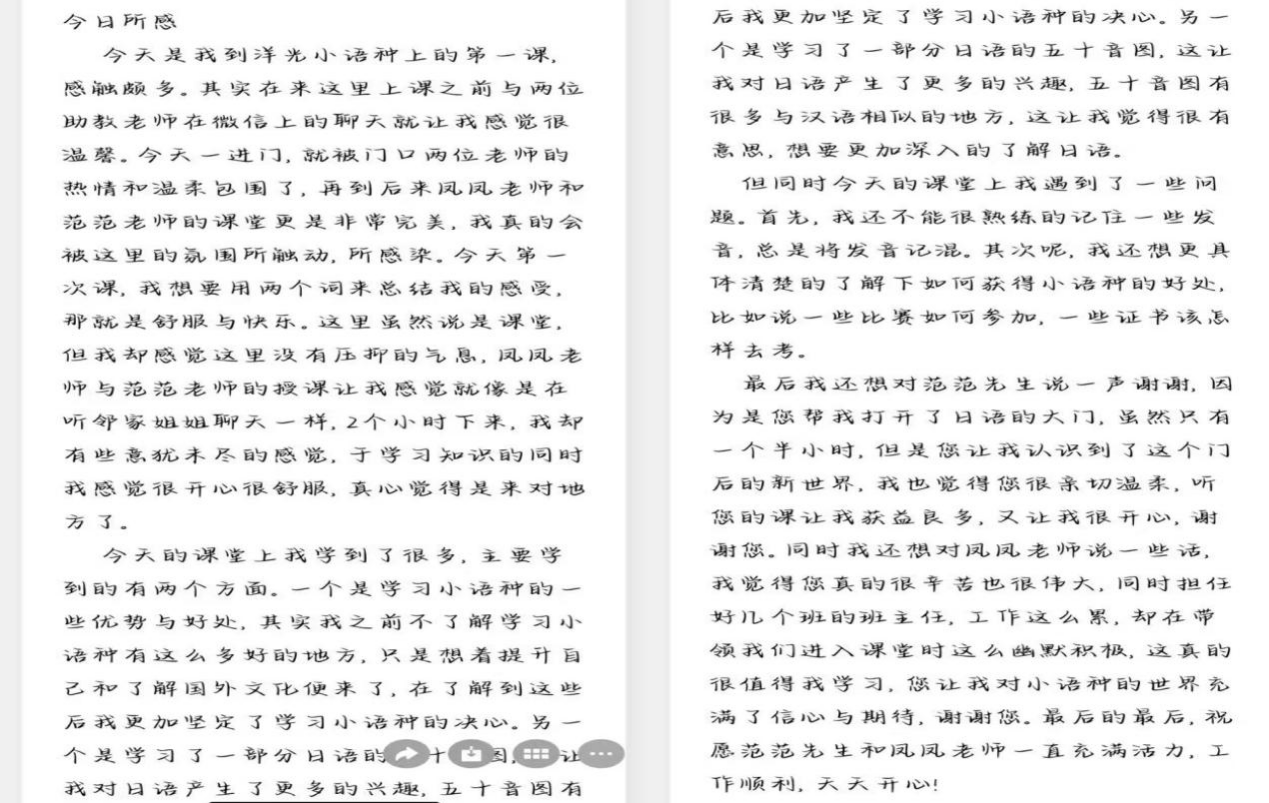 我和洋光小语种的旅途得益于西南交大给我们学子提供的春季国际视野课程,秉持着不能错过免费学习自己感兴趣语言的这个超级“大羊毛”,我兴致勃勃地提交了报名表、参与了面试,当时的我其实也没想到我和日语、和洋光小语种的旅程就此开始了。