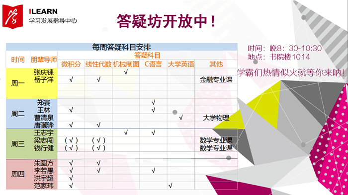【答疑坊】第10教学周答疑科目安排