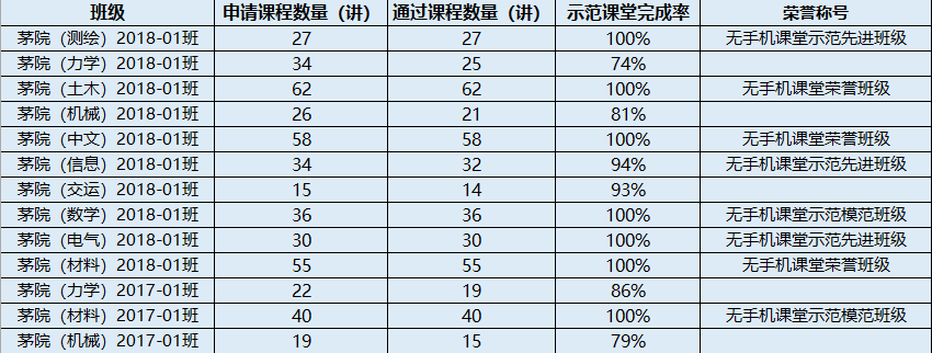 腐漫画 第六期期无手机课堂示范班活动已结束,考核情况已公示,经学院审核,现根据《无手机课堂示范班管理办法》,将各班级所获荣誉称号情况公示如下。