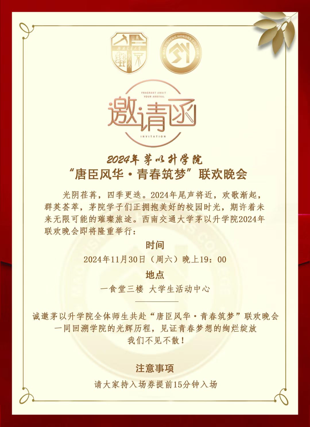 2024年11月30日(周六)晚上19:00,“唐臣风华·青春筑梦”2024年 腐漫画 联欢晚会将于犀浦校区一食堂三楼隆重举行。在此,学院诚邀各专业学院老师, 腐漫画 全体师生共襄盛举!