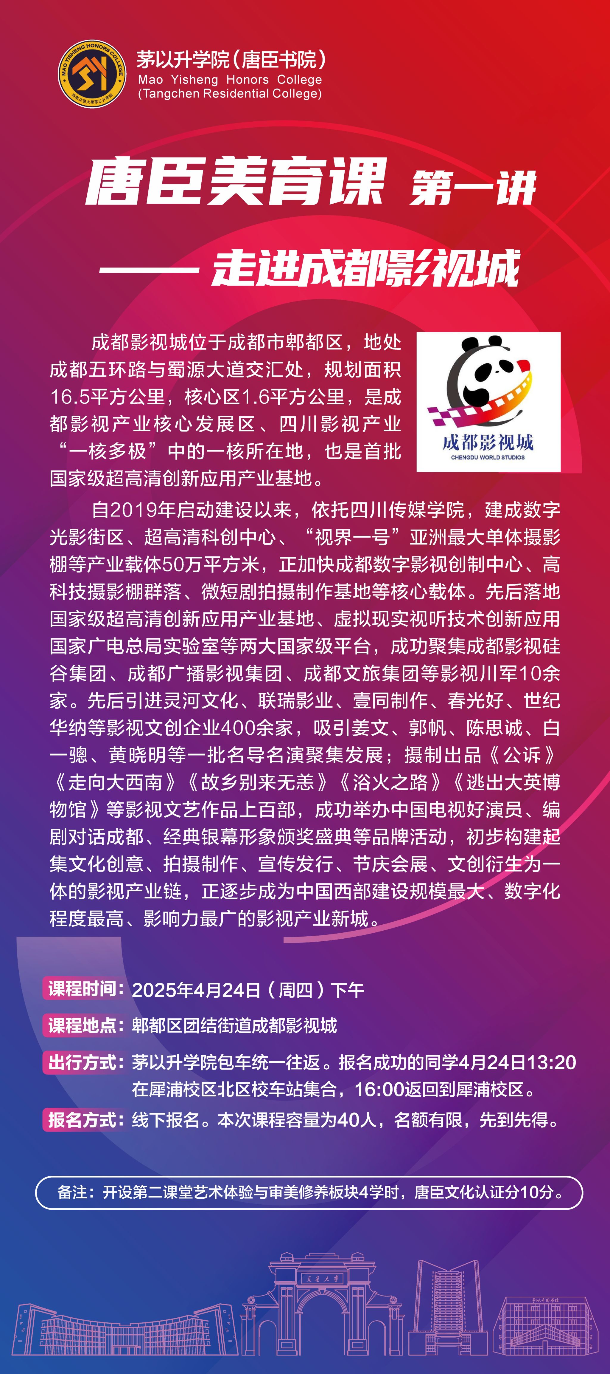 【活动预告】唐臣美育课第一讲——走进成都影视城即将开讲啦