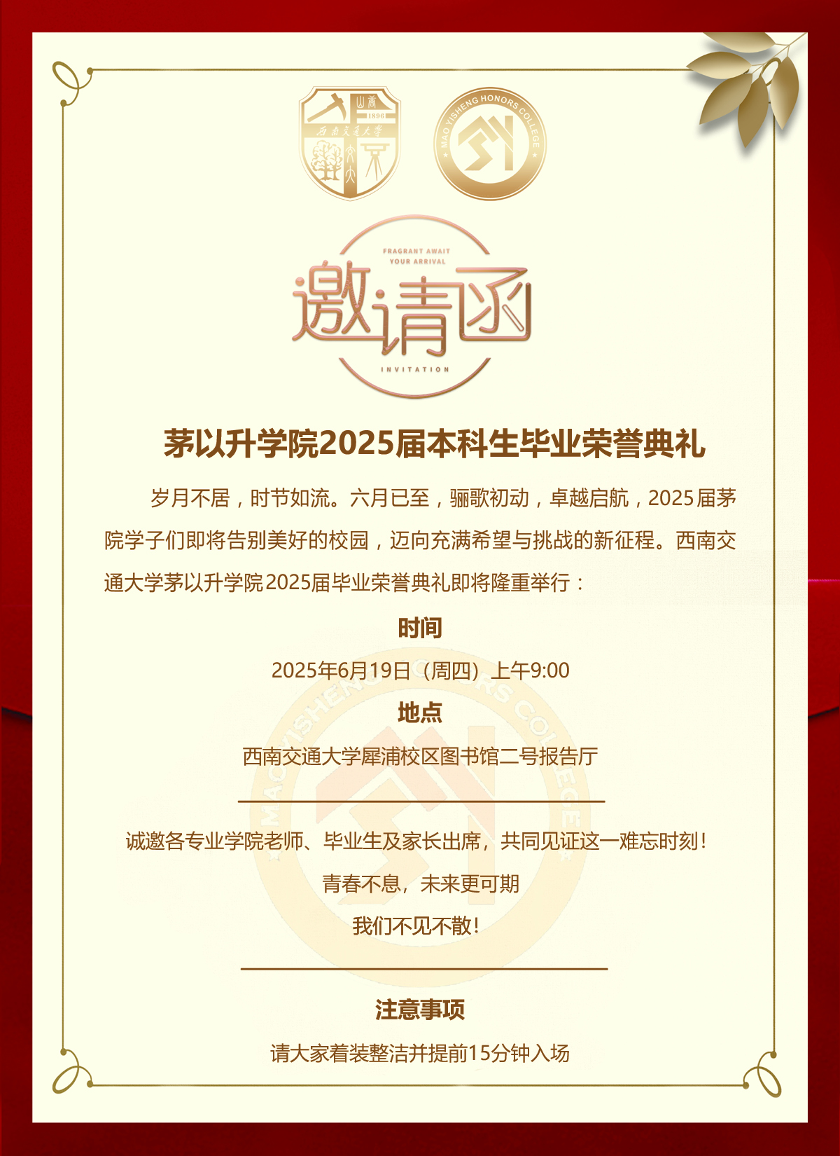 腐漫画 2025届本科生毕业荣誉典礼邀请函