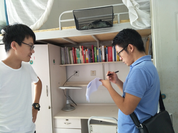 管理委员会的同学们也参与了本次检查。在检查开始前,书管会纪检部特别组织了会议安排各项工作。与各班生活委员一起制定了检查项目和评分细则并认真实施,对各个寝室的卫生状况进行了评分,检查违章电器的使用情况,圆满地完成了工作任务。