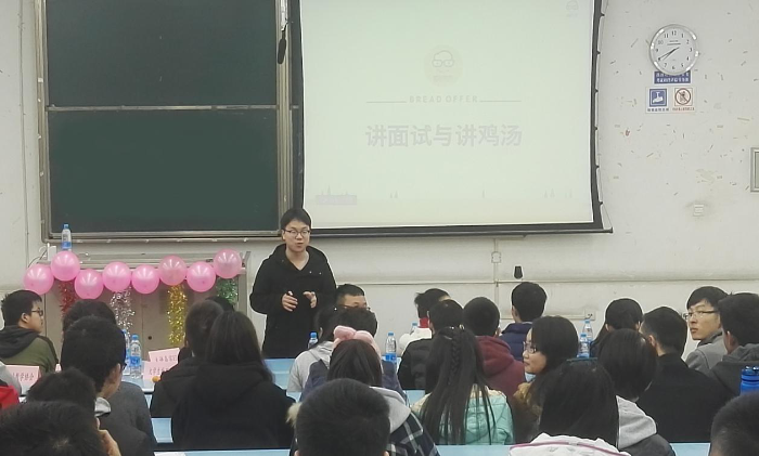 承办的“青春·交大style”——职业成长计划系列活动邀请到了毕业于北京大学,获得CCER、经济学双学位,在咨询投资银行、四大会计事务所等商科行业方面有较深了解,擅长商科职业规划,曾在2015年校园招生季组织北大群面Club,连续两个月每周模拟群面,成功帮助200余人通过群面拿到Offer,至今保持群面必过、单面通过率90%的记录的面试达人Eli与大家面对面展开了一场别开生面的经验分享会。