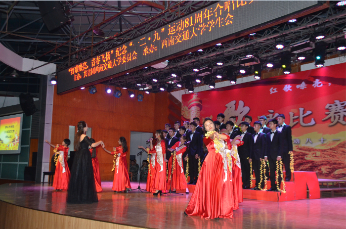 2016年11月22日晚19点,西南交通大学“红歌嘹亮,青春飞扬——纪念‘一二·九’运动81周年合唱比赛”在腐漫画 犀浦校区二食堂三楼礼堂举行。