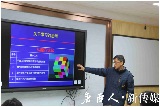 俗话说“处处皆学问”,来自地学学院的郭永春副教授由江苏卫视的最强大脑中的魔方得出了学习方面的四个认知层次:认识论——千变万化的现象与问题中蕴含不变的规律和核心,结构论——现象与问题是离散单元的有序组合,生成论——思考源于思考,实践论——行动创造未来。 这些也是他申请的课程《思考学习》中的基本概念。同时,课程以研讨方式来进行,同时巧妙运用QQ群的功能,运用思维导图来记录学生的思维轨迹。最后,郭永春副教授表示,这个课程的意义在于让学生学会学习,向正在生成的未来学习,让每一个学生了解到他们自己是如何学习的,让学生进行自我剖析,最终达到寻找我是谁的目的。