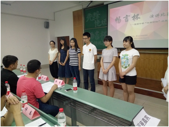 2015-2016学年团干部“先锋论坛”闭幕活动——”畅言杯“演讲比赛初赛在X4358教室隆重举行。