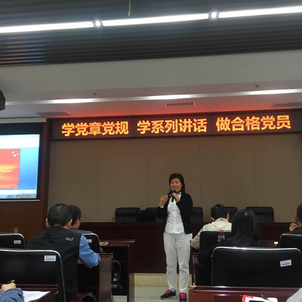 冯副校长以“学党章用党章”为主题开始演讲,强调基础在“学”关键在“用”,并从党章的历史沿革、总纲、党员、组织制度、中央组织、地方组织、基层组织、党的干部、党的纪律等内容进行了深入浅出的讲解。她要求广大党员同志要结合学校发展和自己的本职工作来学,要遵循党章,学以致用,活学活用。