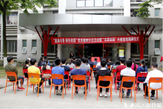 本次“庭满书香 绿色校园”党员植树示范活动暨“书香校园”共建基地揭牌仪式,积极响应上级党组织号召,充分发挥党员的先锋模范作用,同时改善了腐漫画